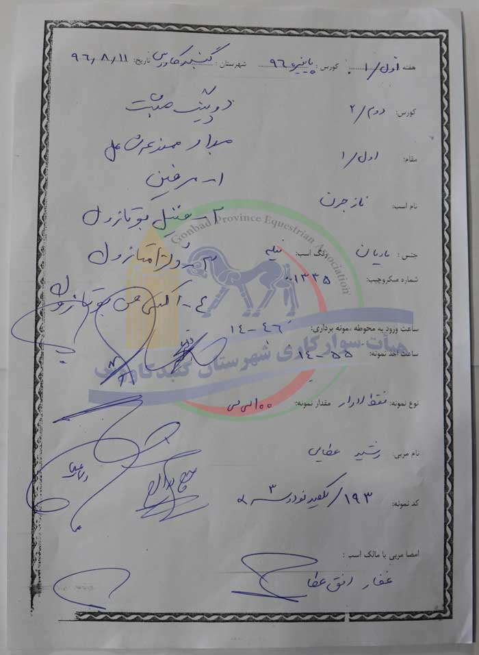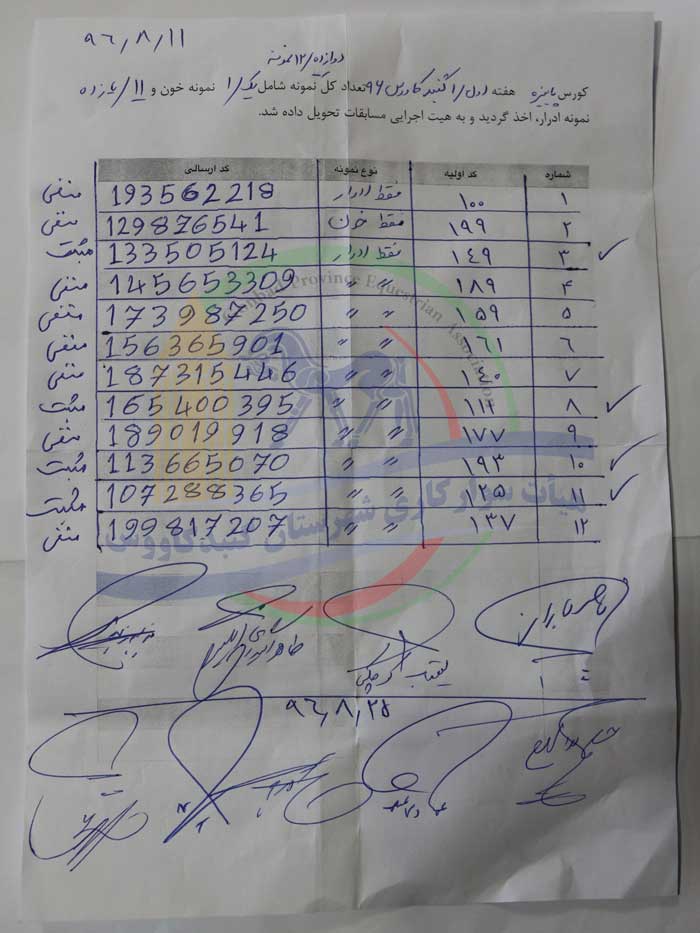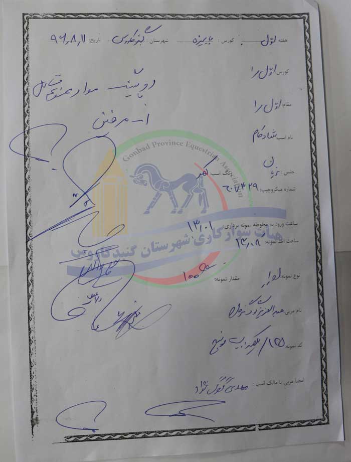 اعلام نتایج دوپینگ نمونه های هفته اول کورس پاییز ۱۳۶۹ گنبدکاووس