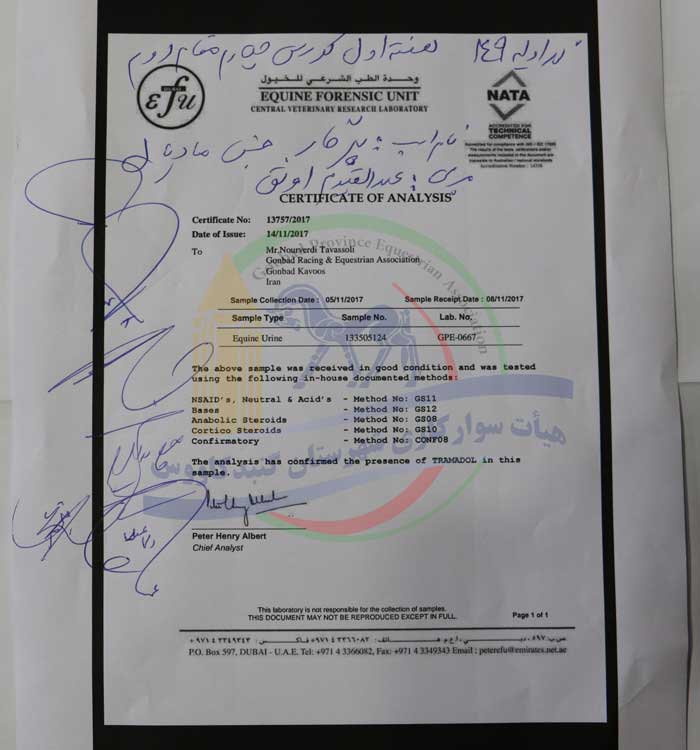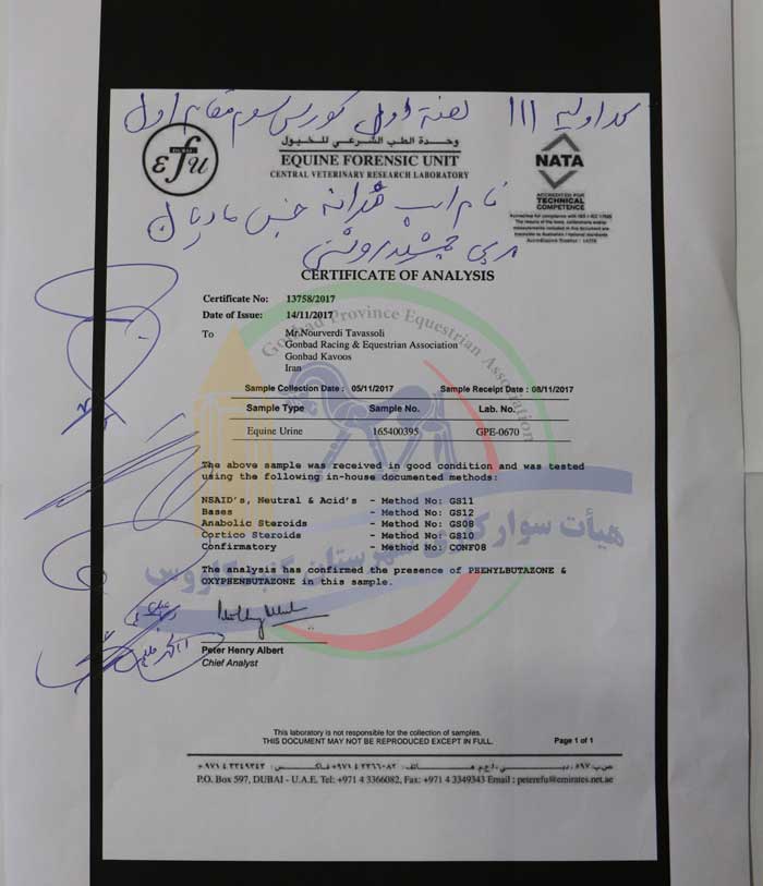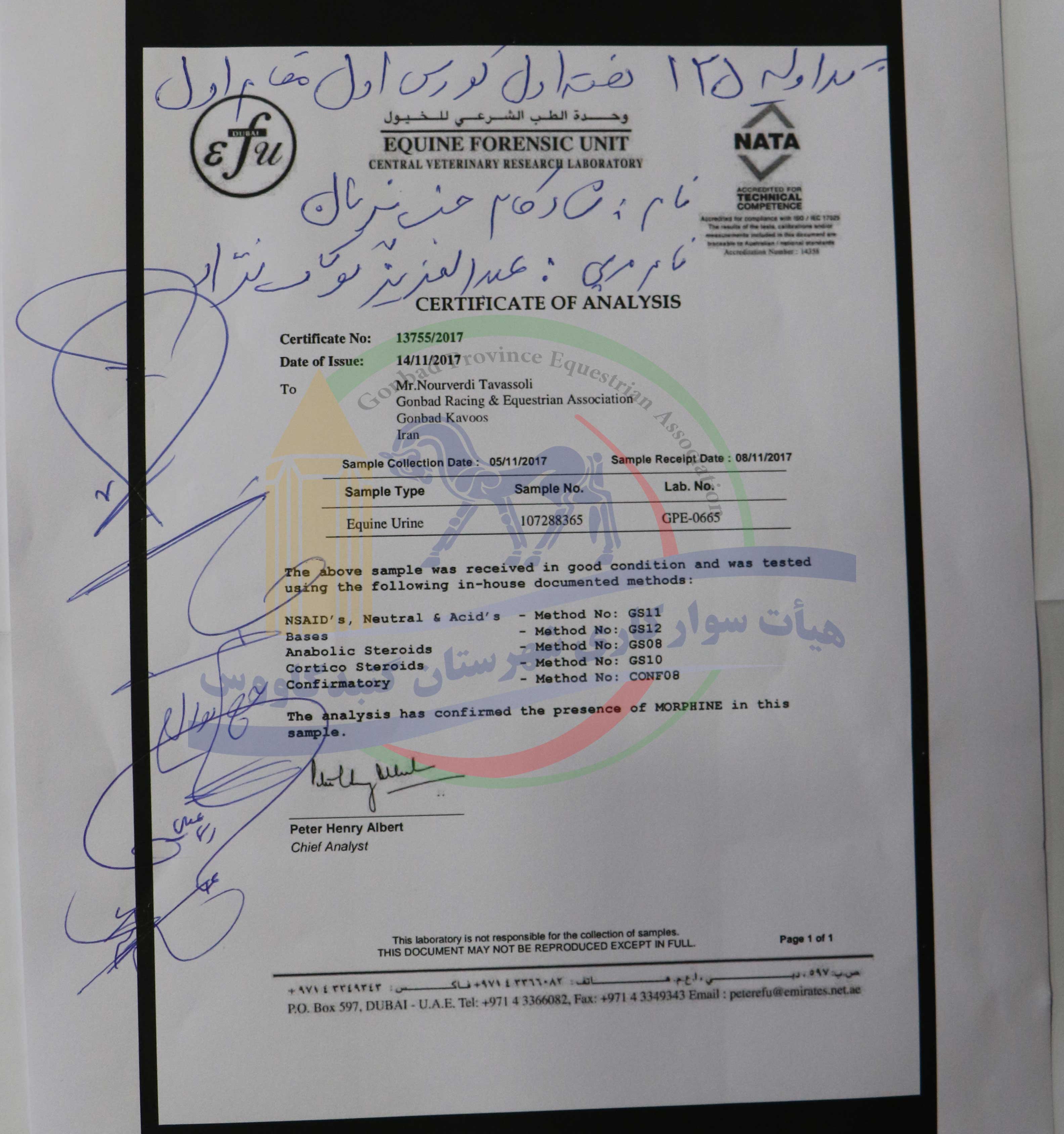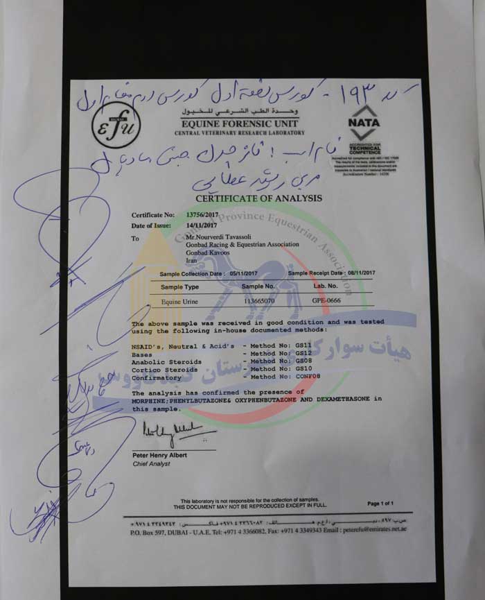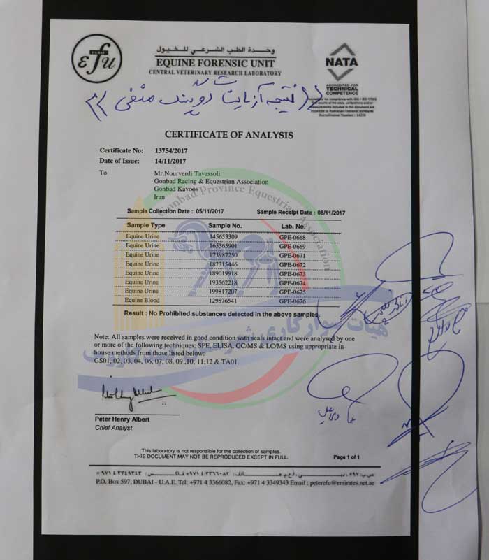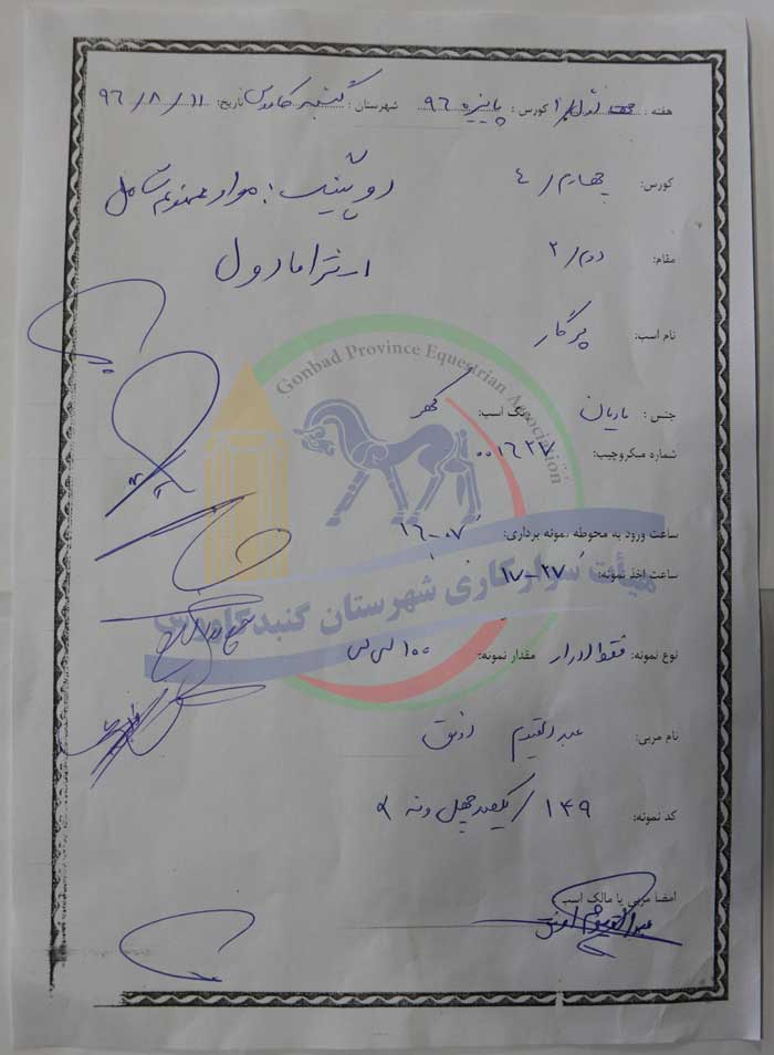 نتایج دوپینگ نمونه های هفته اول کورس پاییز گنبدکاووس: